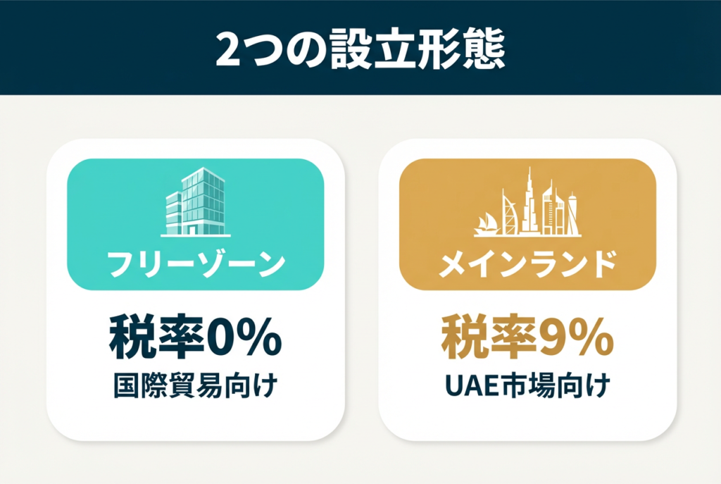 フリーゾーン企業は適格要件を満たせば0%税率の恩恵を受けられますが、UAE本土市場での活動制約があります。一方、メインランド企業は9%課税ですが、UAE全土で自由に営業できます。