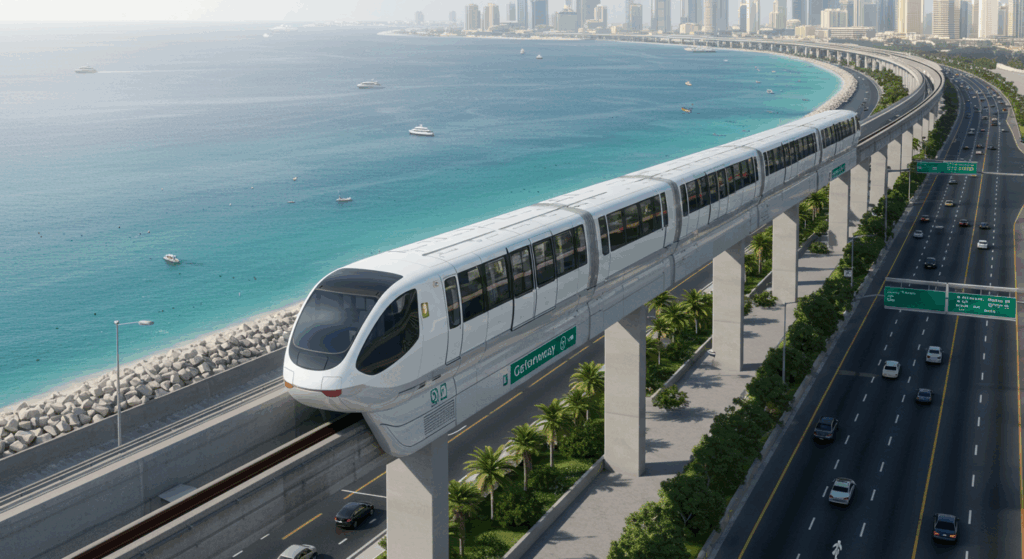 パーム・モノレールは2009年に開業し、ゲートウェイ駅からアトランティスまで10分で結びます(*23)。中東初のモノレールとして、アル・イッティハド公園、ナキールモール、アトランティス、ザ・ポイントを接続しています。車でアクセスする場合は、シェイク・ザイード・ロードからトランクのメインアクセス道路を経由し、標識に従って進みます。