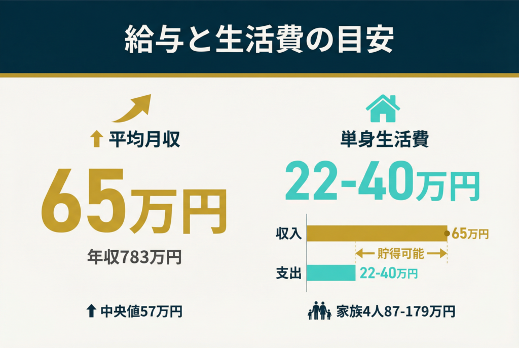 単身者の場合、月間生活費は住居・食費・交通費を含めて5,300〜9,800AED(約22万〜40万円)が目安とされています(*2)。つまり、平均月収の15,800AED(約65万円)であれば、基本的な生活を送りながら貯蓄も可能な水準といえます。