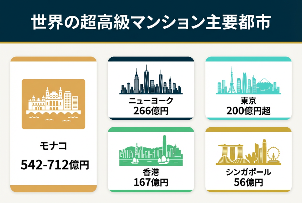 モナコのトゥール・オデオン・スカイペントハウスは推定335百万から440百万ユーロ(約542億から712億円)と報じられていますが、成約価格は非公開です。高額な理由は、立地の希少性、眺望の価値、ブランド力、建築品質が組み合わさるためです。世界の超富裕層人口が510,810人に達し、限定的な供給を競い合うことで価格が形成されます。