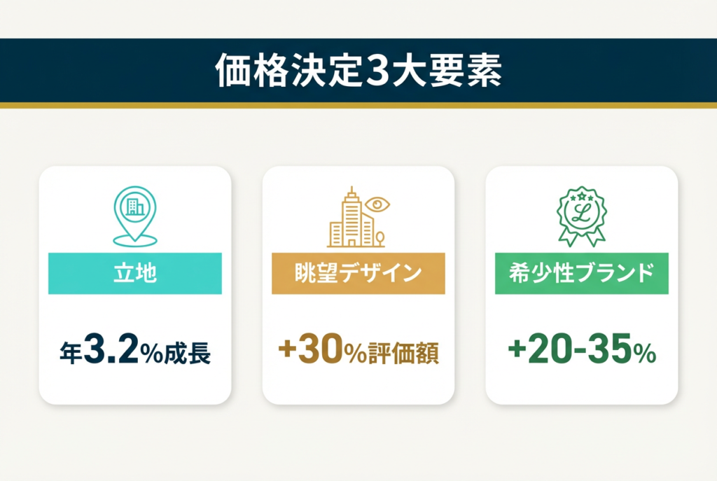 投資判断のポイントとして、立地の希少性、ブランド力、建築品質が価格を左右する要素となります。
