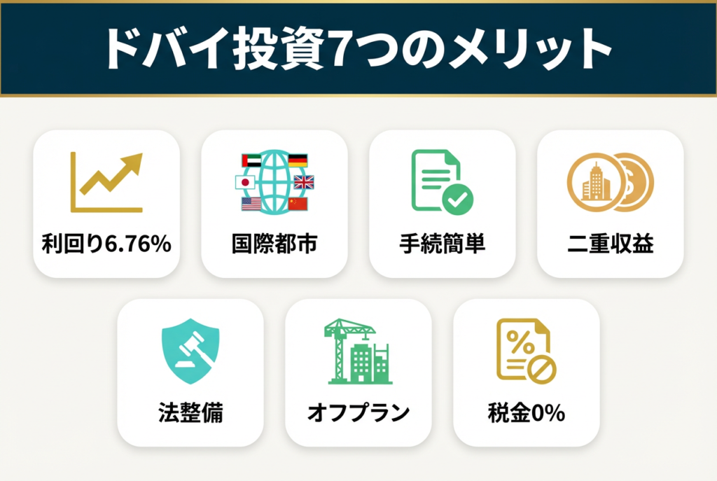 ドバイ不動産投資を2025年に始めるべき理由は、高利回り、税制優遇、市場成長性の3つです。