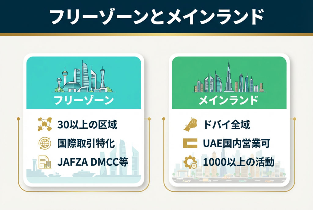 ドバイで法人を設立する際、最初に決定すべきはフリーゾーンとメインランドのどちらで登記するかという選択です。