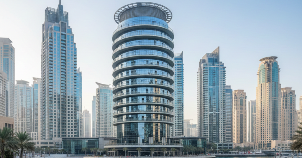 建物内には676戸のアパートメントがあり、最上部のガラス張りの王冠部分が炎のようにねじれたデザインが特徴です。こちらもCTBUHの公式データベースに登録されており、ドバイマリーナの象徴的な建築物として高い認知度を持つ投資物件です。