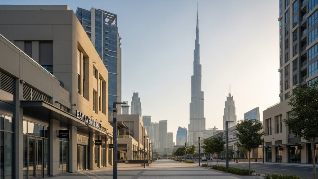 ビジネスベイの主要商業施設であるベイ・アベニューは、エグゼクティブ・タワーズの基壇部に位置する2階建ての複合施設です(*2)。