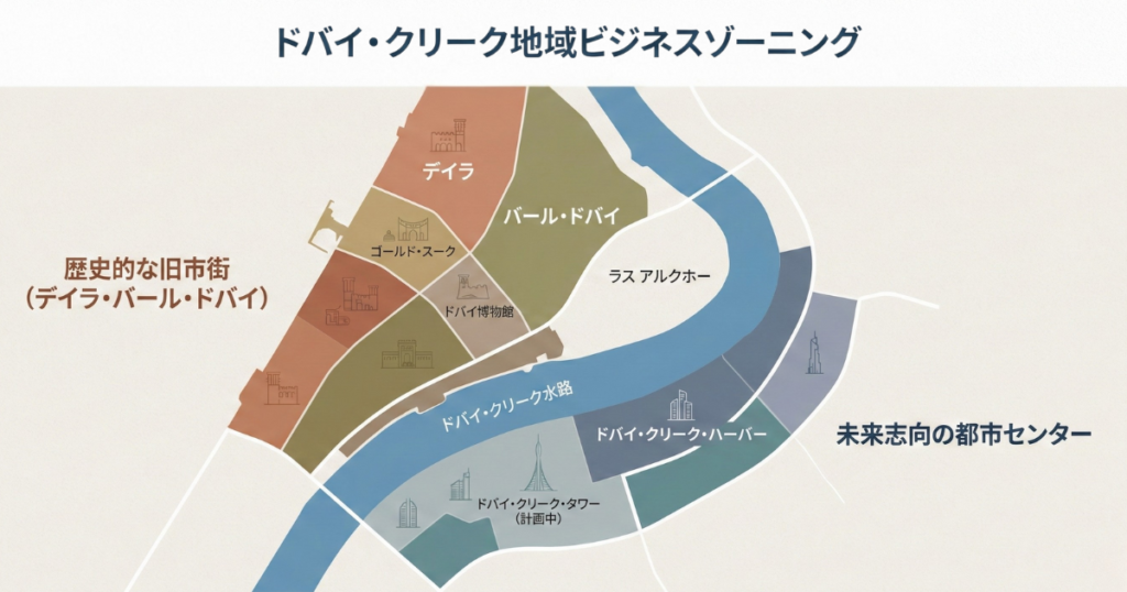 ドバイクリークとは|歴史的な水路と新都心ハーバーの全体像【図解あり】