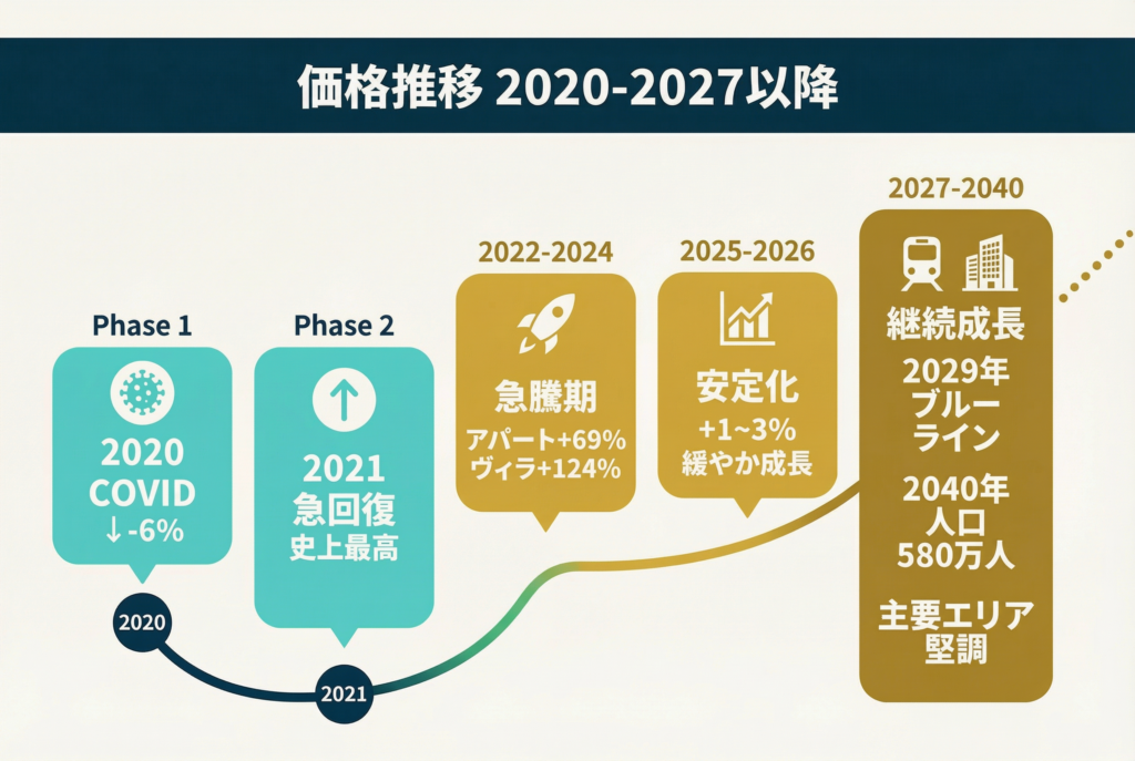 ドバイ不動産の相場推移|2020年から2027年以降へ続く成長トレンドを時系列で解説